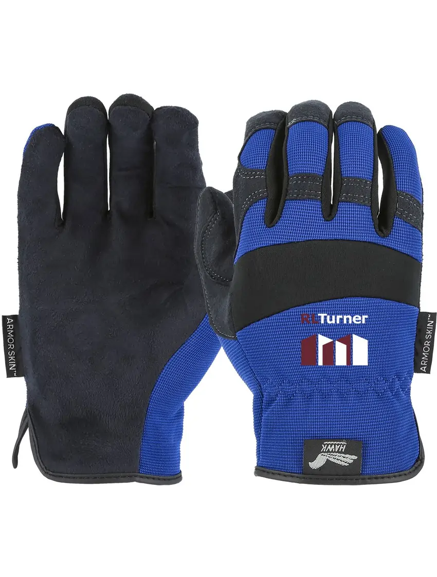 Synthetic leather (Clarino Parity) palm that is breathable, soft and lightweight. Water resistant yet washable and extremely durable. Stretch knit back, neoprene knuckle area. Blue (Pre-Curved, Water-Resistant)