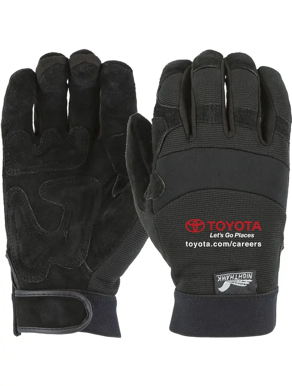 Mechanic style glove. Reversed cowhide grain palm with reinforced, padded palm. Extra protection from the fatigue associated with light hand tools. Black stretch knit back, neoprene knuckle and Velcro wrist closure.