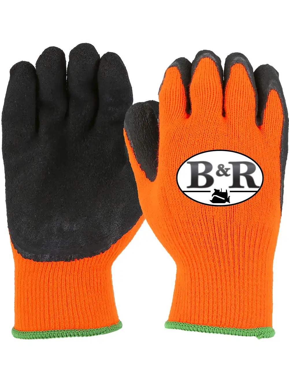 Very comfortable latex palm coated knit. Excellent fit. High visibility orange knit with latex dipped palm. (Pre-Curved)